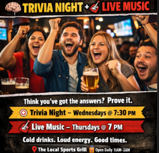 We are an All-American Sports Bar & Grill that proudly serves our local community